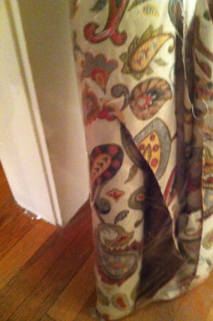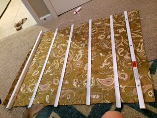 4.) I measured then marked my fabric with a sharpie so that I put the blinds in the exact spot (7 inches apart from each one). I'll add this. I did mess up and my bottom one was not 7 inches apart from the 2nd to last one. What I should have done was take the length of my blinds and the number of folds and divided it which would have given me the perfect spacing for my folds and completely taken away one of my blinds. I'll definitely do this next time.