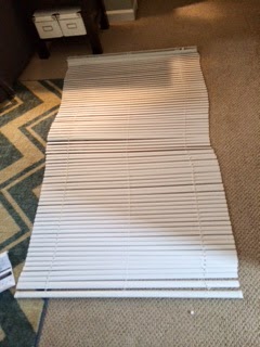 1. Start by taking your blinds out of the box and lay them out. These blinds cost $5 at Home Depot. I had no idea they were so cheap.