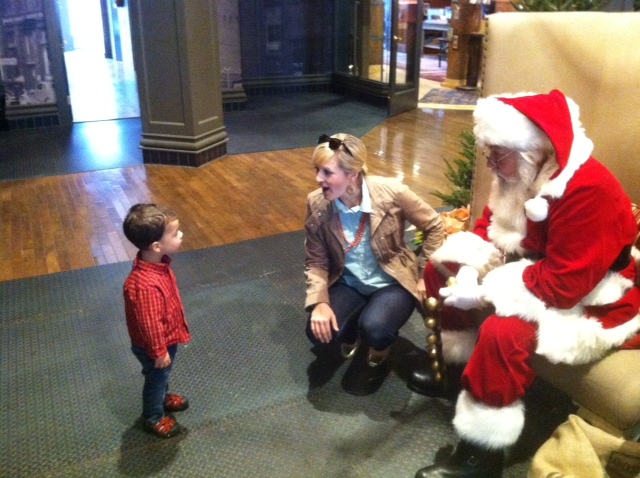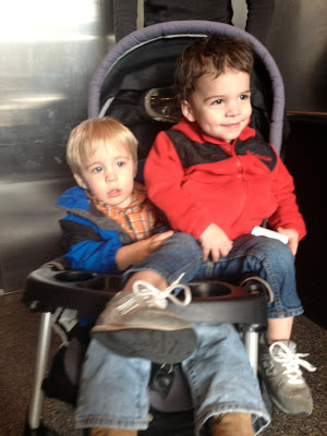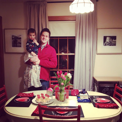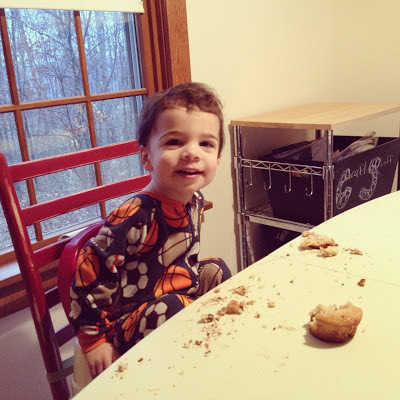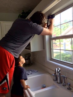 6.) Then have your handsome husband and cute little stinker help put up the hardware. I really need to learn to use the drill, but I'm afraid I'm going to break the bit off in the wall. So I make MR.P do it.